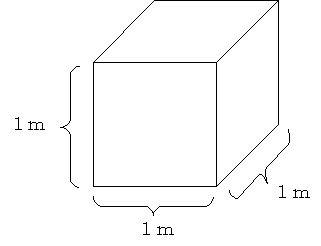 一つの辺の長さが1mの、さいころの形の入れ物に入る水の量です。