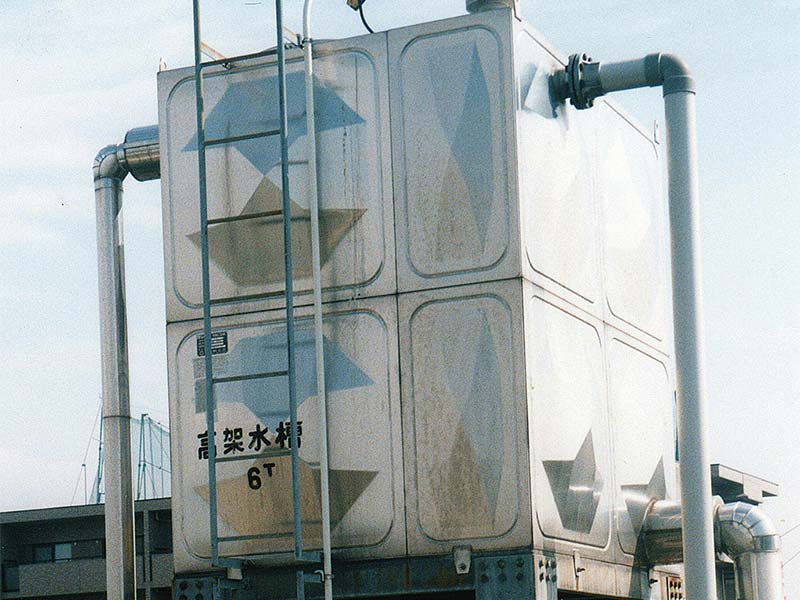 学校で使う水は、ポンプで屋上のタンクにくみ上げられ、水道管を通って、校舎のいろいろな場所へ行くんだね。