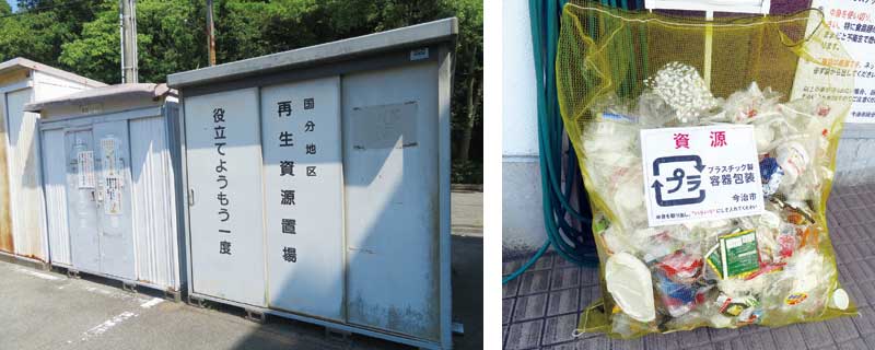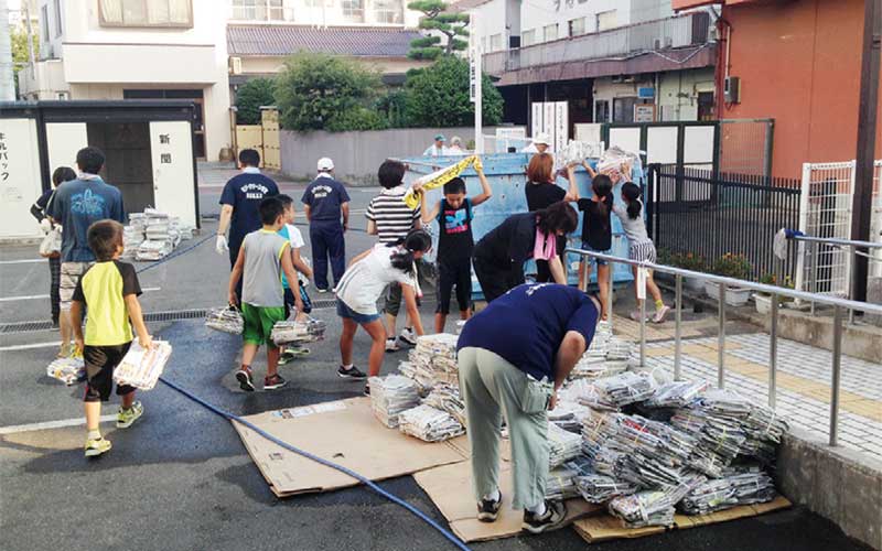 自治会や公民館では、しげんを回しゅうしています。新聞紙やだんボール、プラスチックようきなど、種類ごとに分けて再利用できるようにしています。